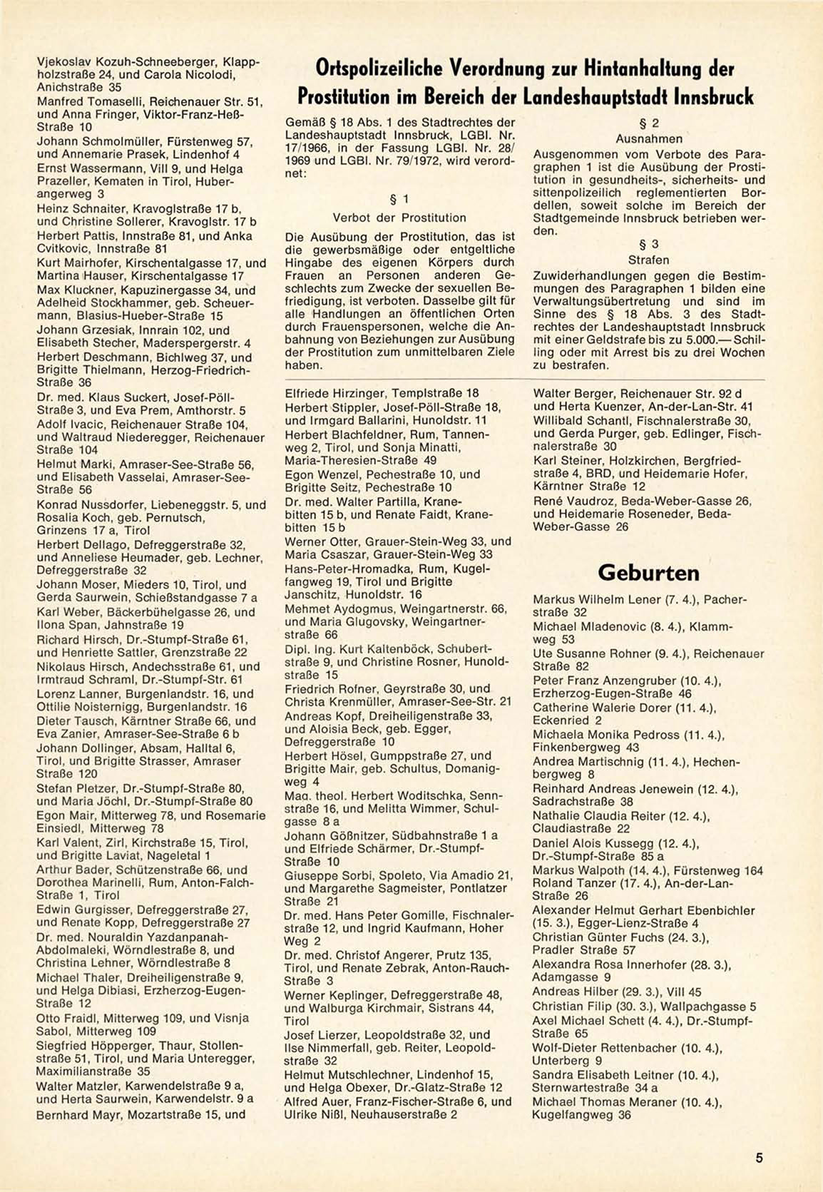 Prostitution im Bereich der Landeshauptstadt Innsbruck
