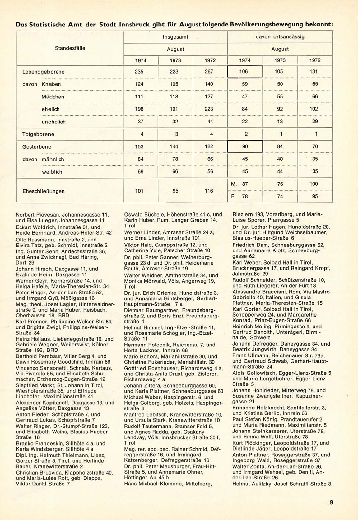 Das Statistische Amt der Stadt Innsbruck gibt für August folgende Bevölkerungsbewegung bekannt: