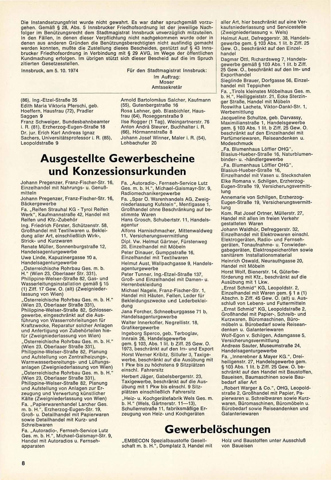 Innsbruck, a m 5. 10. 1974