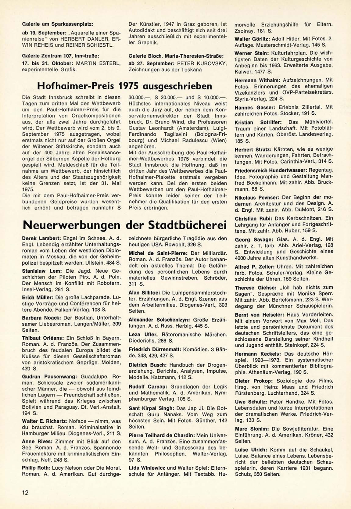 Mit der A u s s c h r e i b u n g d e s P a u l - H o f h a i m e r - W e t t b e w e r b e s 1975 v e r b i n d e t die