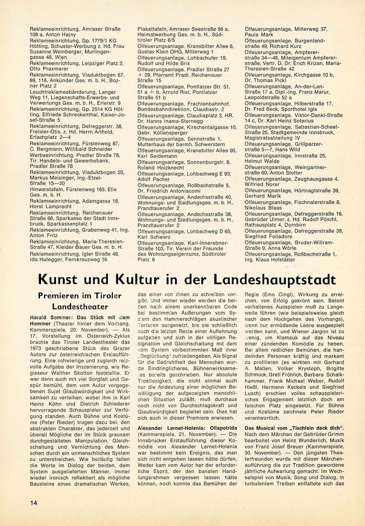 Innsbrucker Erstaufführung d i e s e r K o mödie von A l e x a n d e r L e r n e t - H o l e n i a