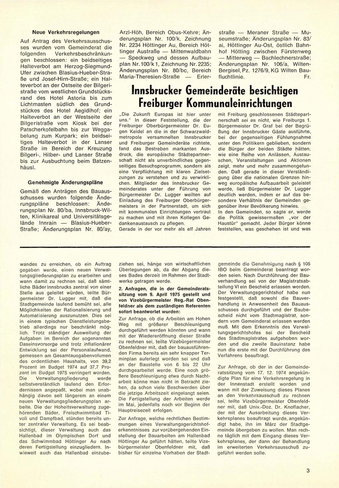 2. Anfragen, die in der Gemeinderatssitzung vom 9. April 1975 gestellt und