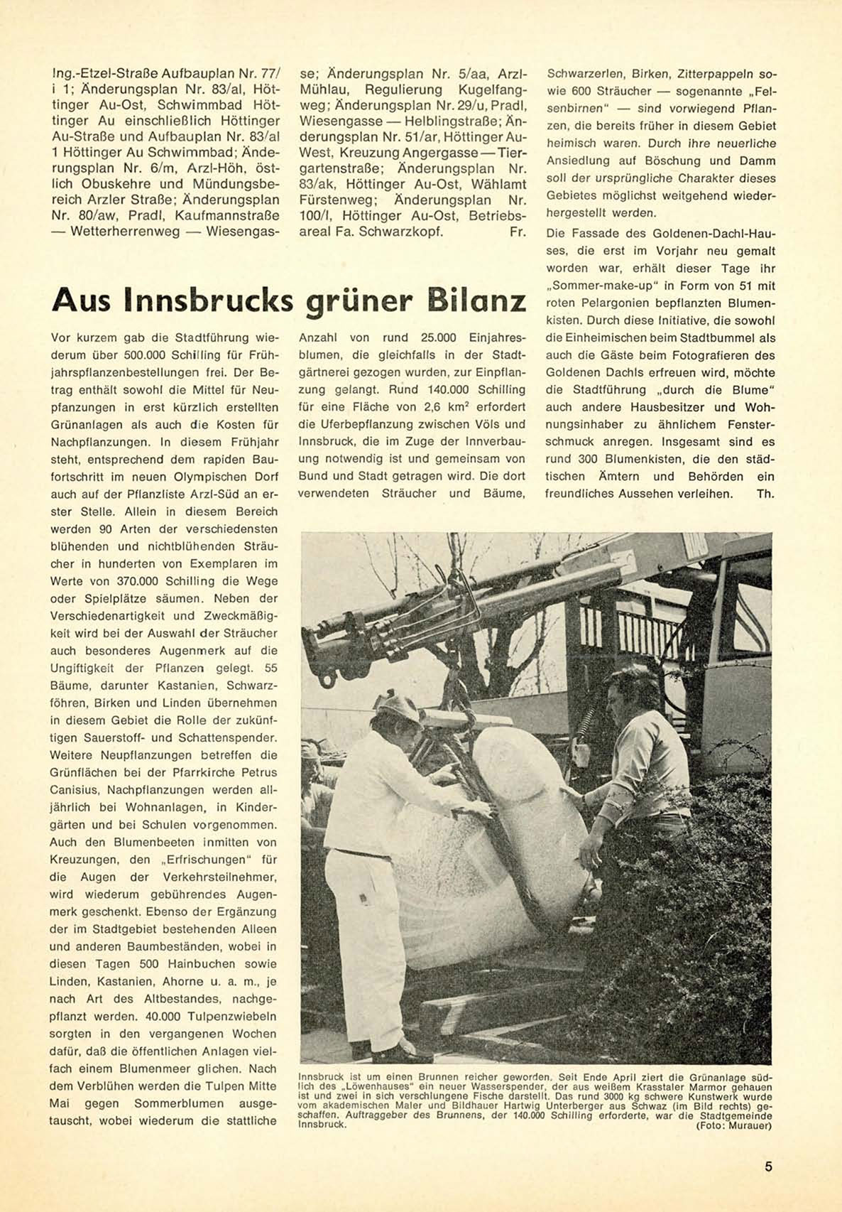 Innsbruck ist um einen B r u n n e n reicher g e w o r d e n . Seit E n d e A p r i l ziert d i e G r ü n a n l a g e s ü d lich des „Löwenhauses" ein neuer W a s s e r s p e n d e r , der aus weißem Krasstaler M a r m o r gehauen