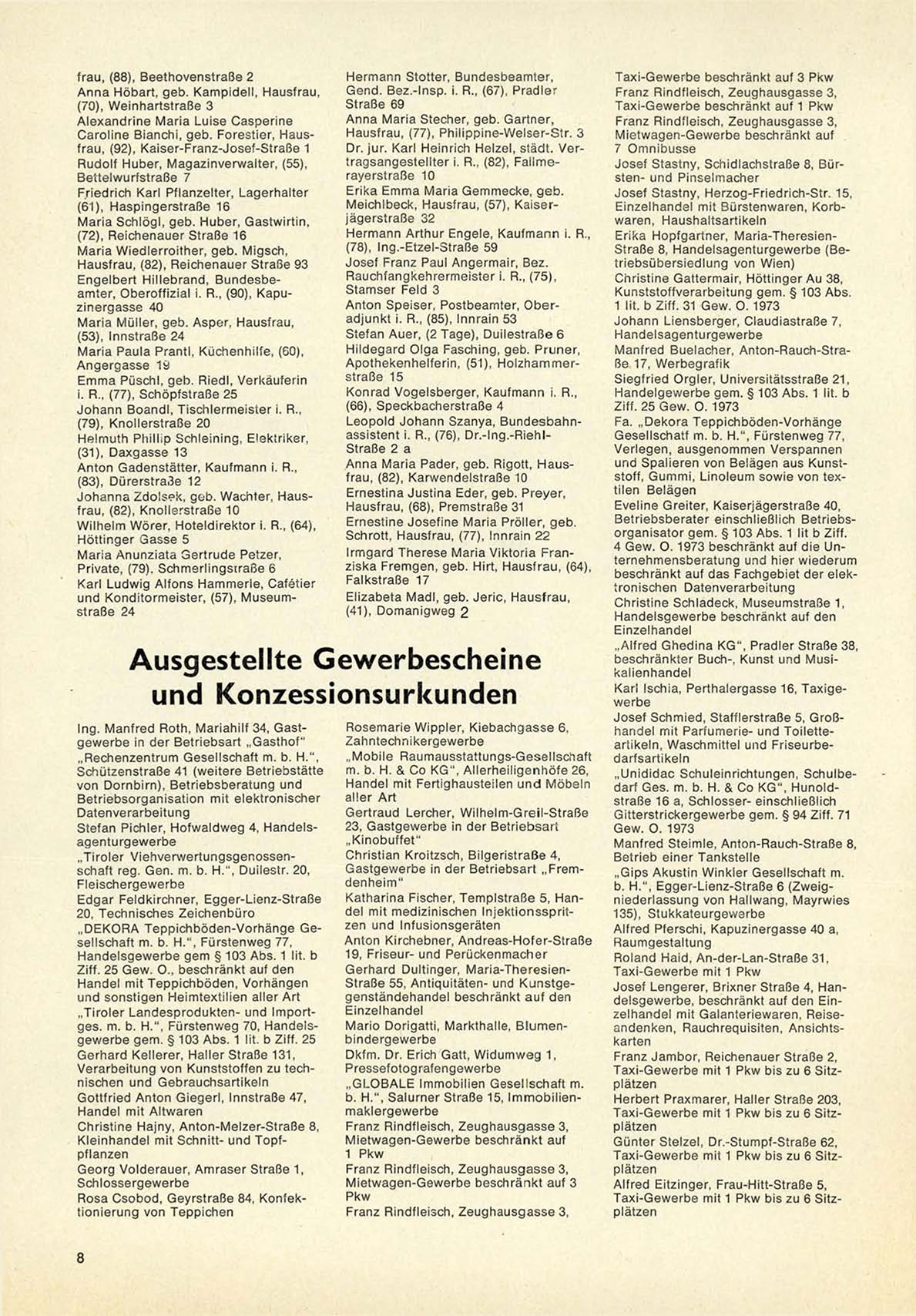 „ T i r o l e r L a n d e s p r o d u k t e n - und Importg e s . m. b. H . " , Fürstenweg 70, H a n d e l s g e w e r b e g e m . § 103 A b s . 1 lit. b Ziff. 25