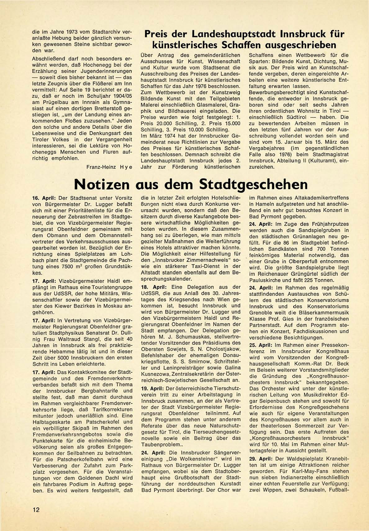 Im März 1974 hat d e r I n n s b r u c k e r G e meinderat neue R i c h t l i n i e n z u r V e r g a b e