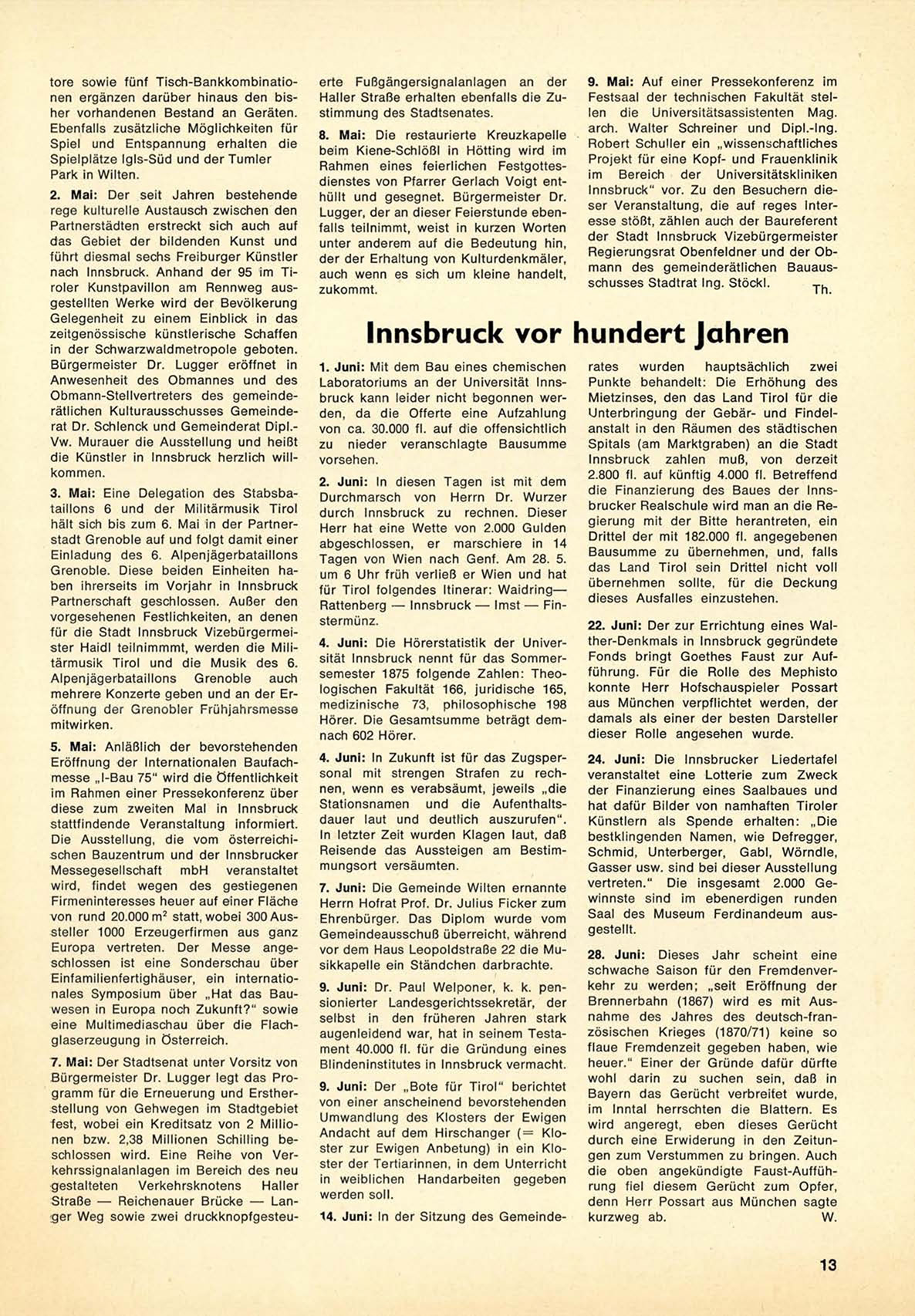 4. Juni: Die Hörerstatistik d e r Universität Innsbruck nennt für d a s S o m m e r s e m e s t e r 1875 f o l g e n d e Z a h l e n : T h e o l o g i s c h e n Fakultät 166, j u r i d i s c h e 165,