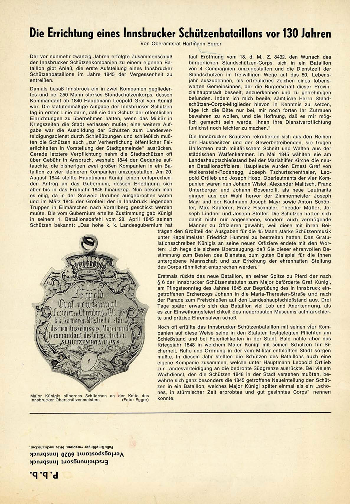 § 6 der Innsbrucker Schützenstatuten z u m M a j o r beförderte G r a f K ü n i g l ,