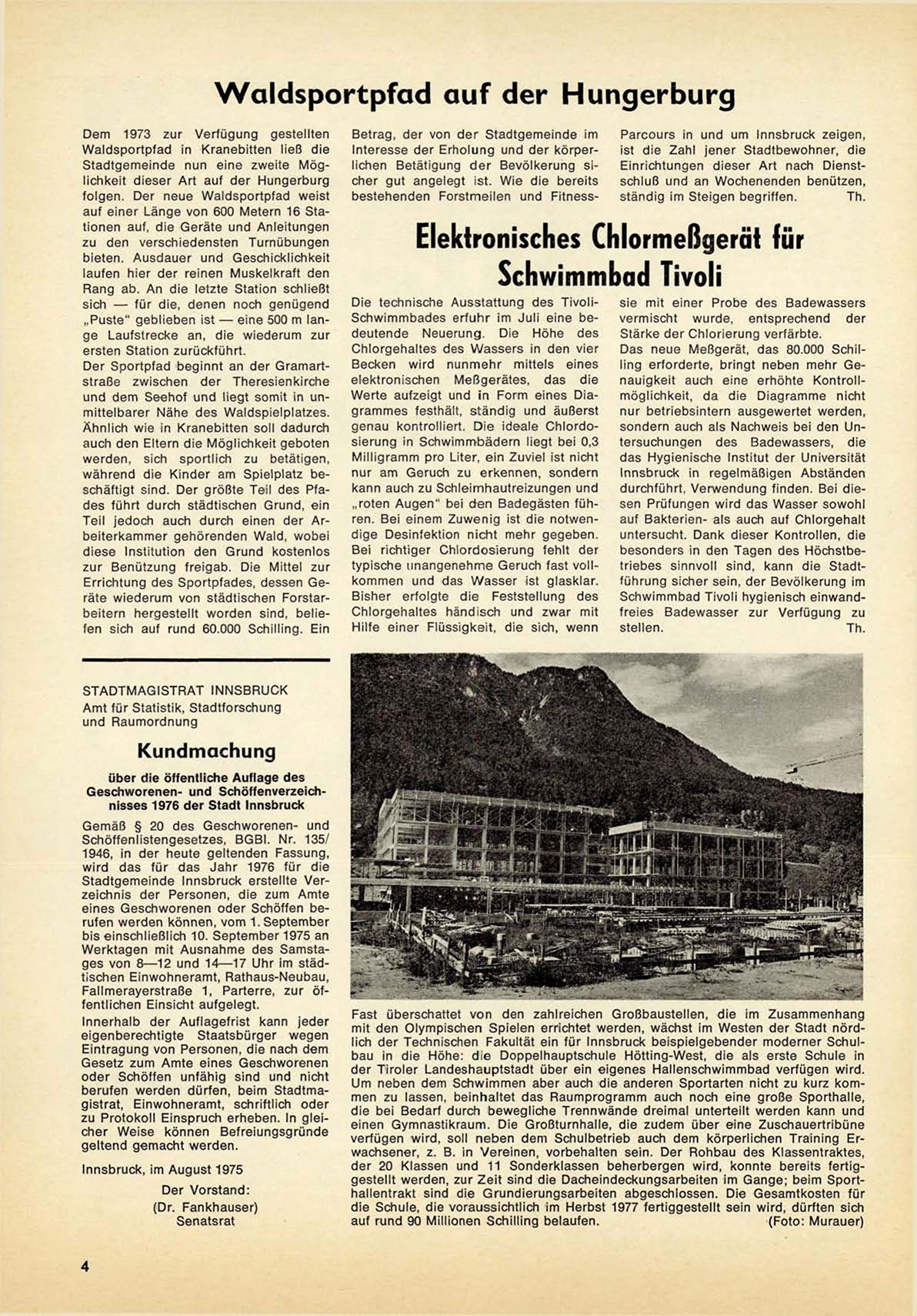 Geschworenen- und Schöffenverzeichnisses 1976 der Stadt Innsbruck