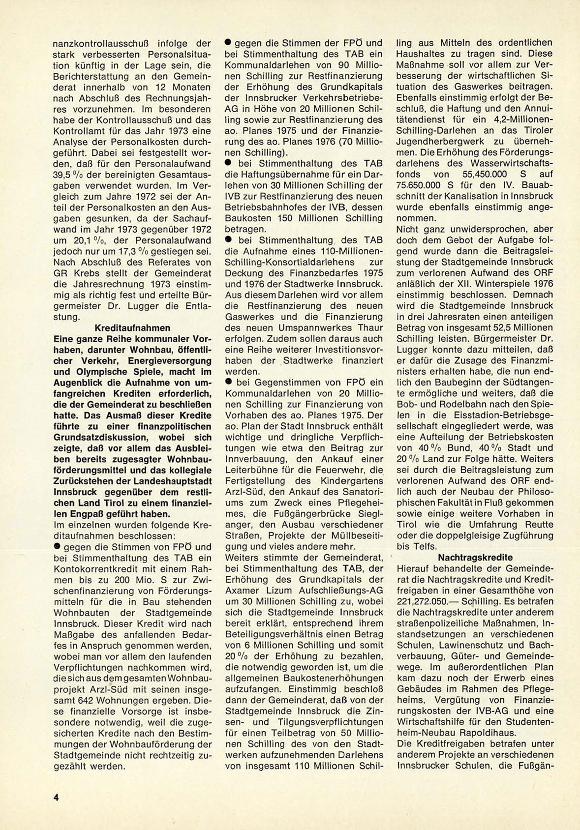 ao. Planes 1975 und der Finanzierung des ao. Planes 1976 (70 Millionen Schilling).