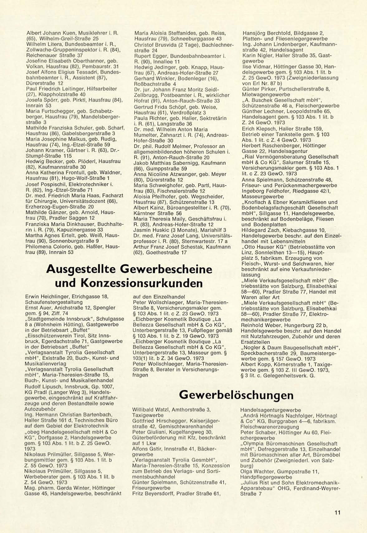 Speckbacherstraße 29, B a u m e i s t e r g e w e r b e g e m . § 157 G e w O . 1973