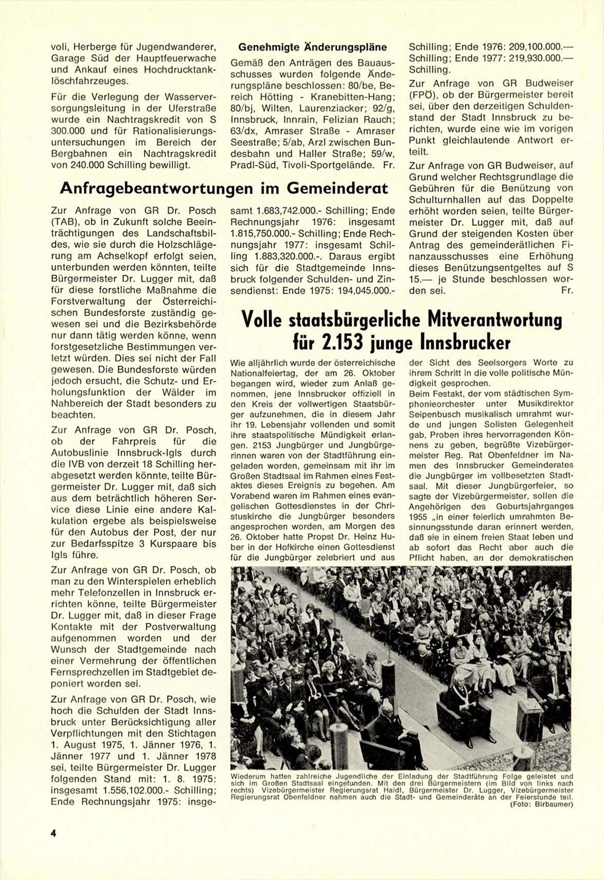 sich für die Stadtgemeinde Innsbruck folgender Schulden- und Zinsendienst: Ende 1975: 194,045.000.-
