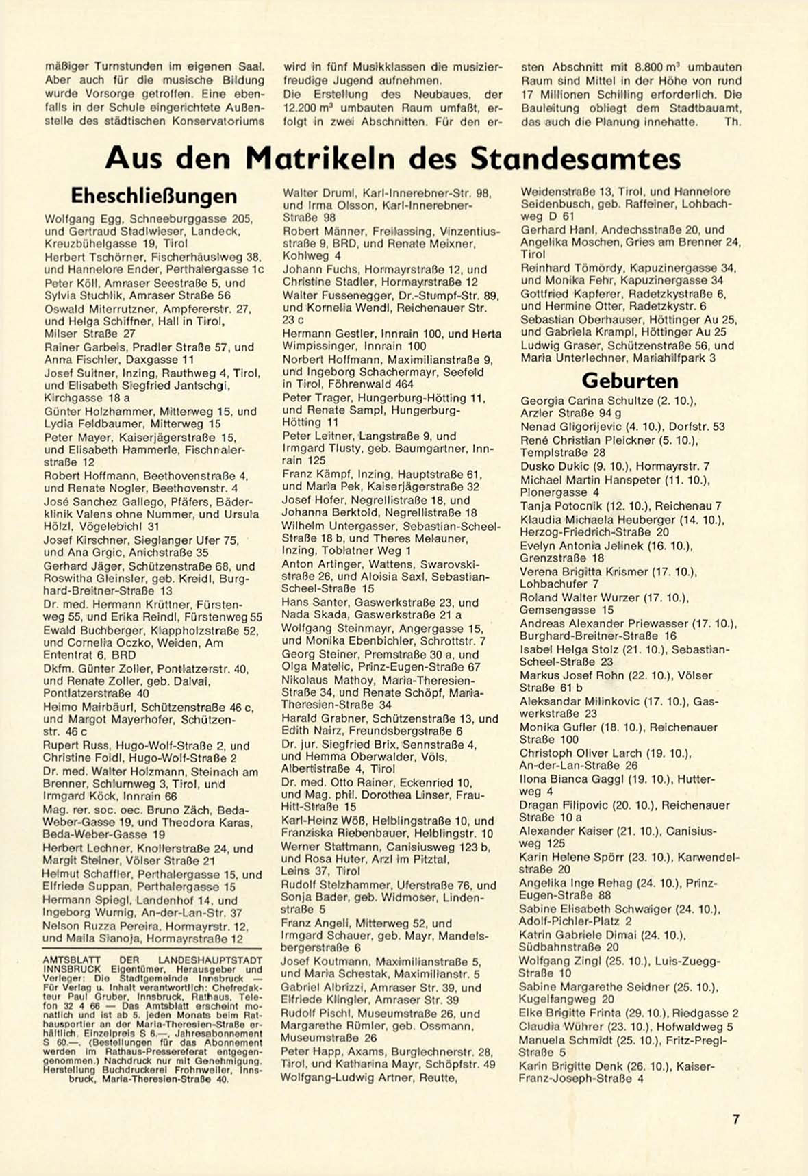 Für Verlag u. Inhalt verantwortlich: C h e f r e d a k teur Paul G r u b e r , Innsbruck, R a t h a u s , T e l e fon 32 4 66 — Das Amtsblatt erscheint monatlich und Ist ab 5. Jeden M o n a t s beim Rathausportler an der Maria-Theresien-Straße erhältlich. E i n z e l p r e i s S 6.—. J a h r e s a b o n n e m e n t