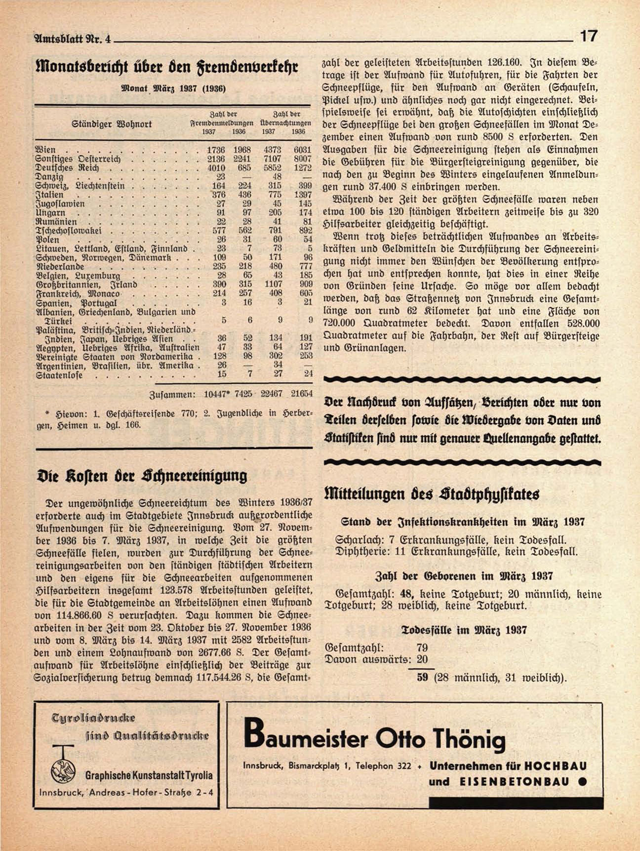 erforderte auch im Stadtgebiete Innsbruck außerordentliche