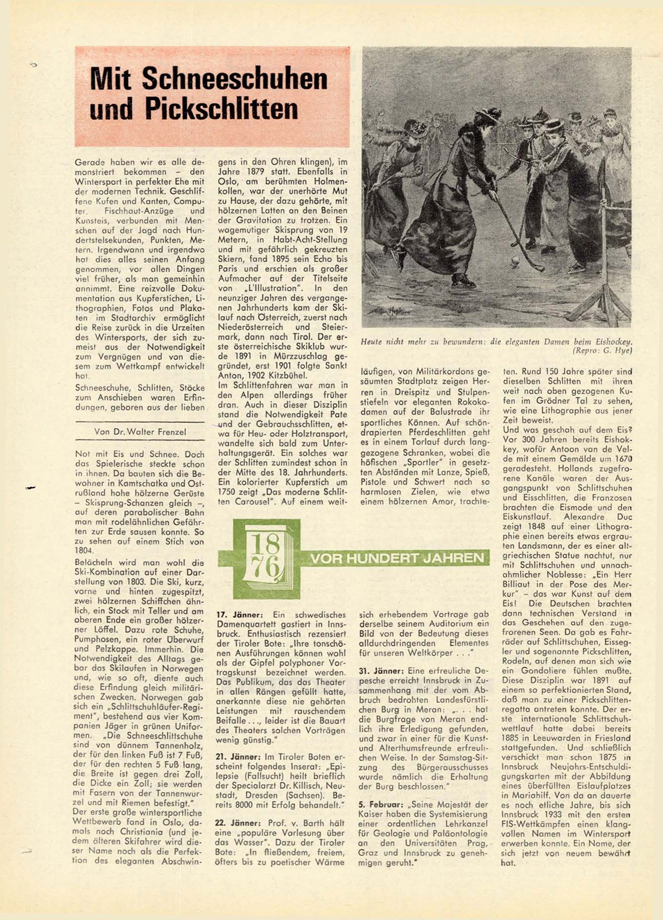 d a ß man zu einer Pickschlittenregatta antreten konnte. Der erste i n t e r n a t i o n a l e Schlittschuhwettlauf