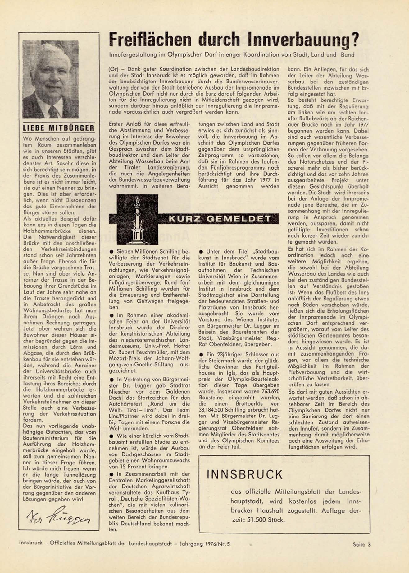Innsbruck - Offizielles Mitteilungsblatt der Landeshauptstadt - Jahrgang 1976/Nr.5