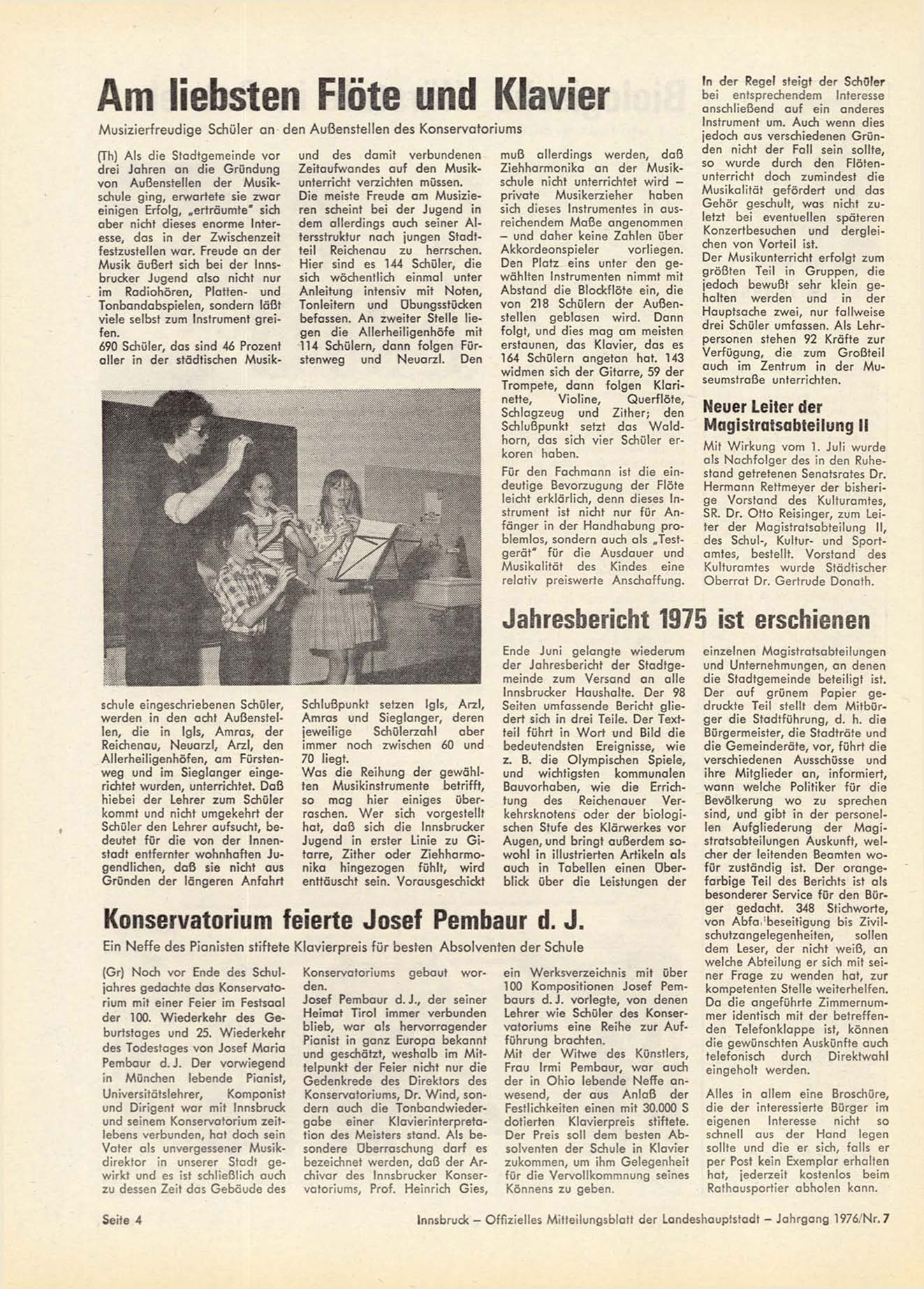 Innsbruck - Offizielles Mitteilungsblatt der Landeshauptstadt - Jahrgang 1976/Nr. 7