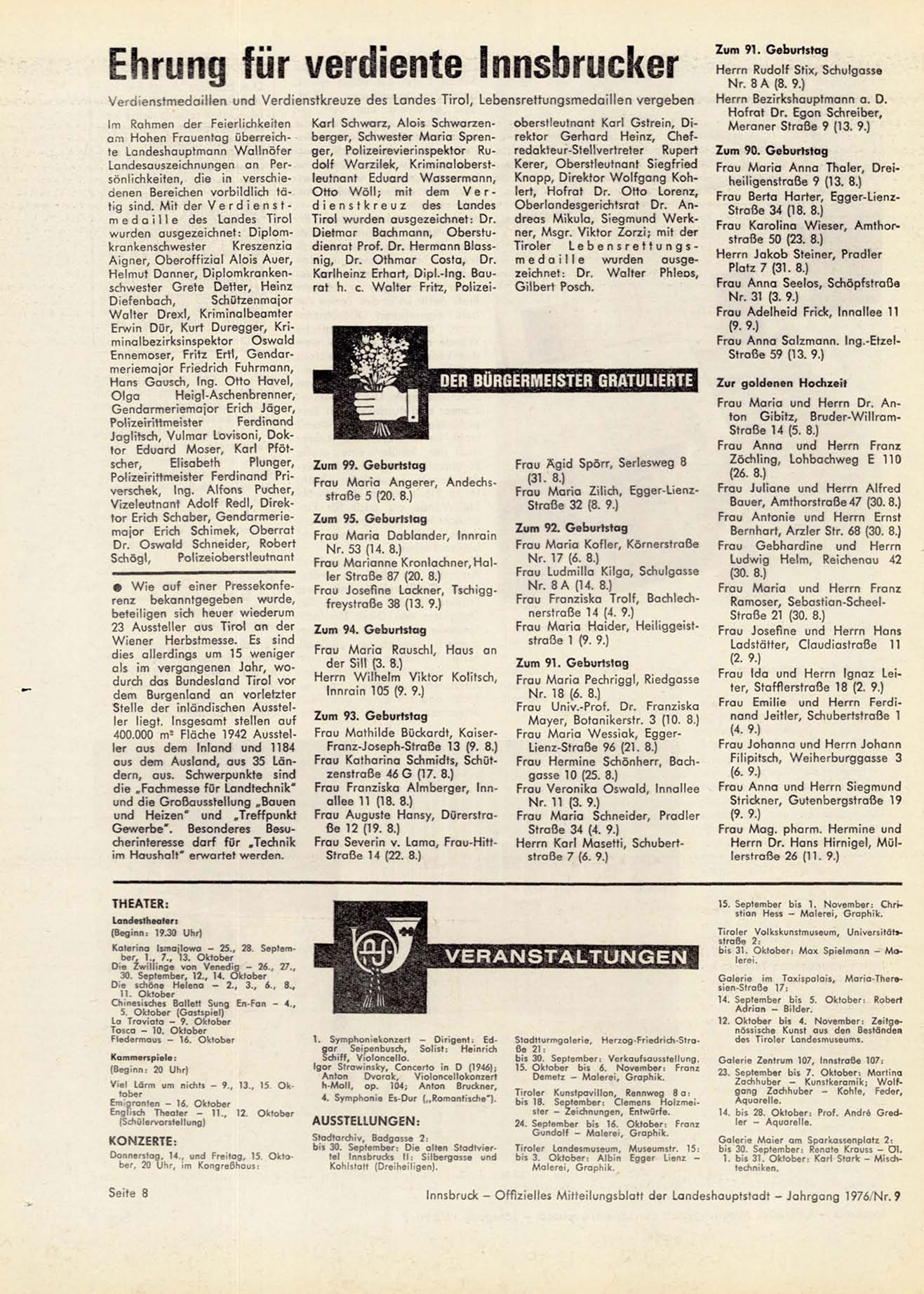 Innsbruck - Offizielles Mitteilungsblatt der Landeshauptstadt - Jahrgang 1976/Nr. 9