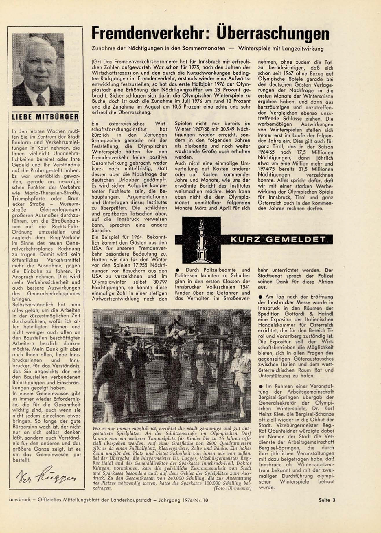 Innsbruck - Offizielles Mitteilungsblatt der Landeshauptstadt - Jahrgang 1976,"Nr. 10