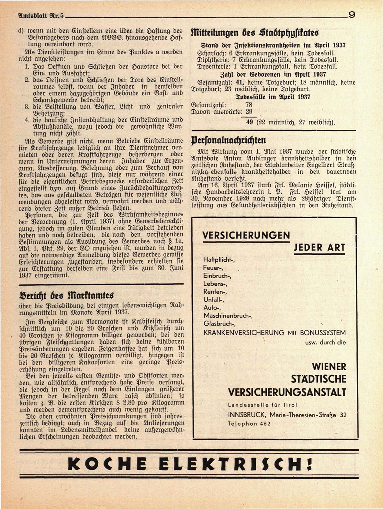 Mit Wirkung vom 1. Mai 1937 wurde der städtische