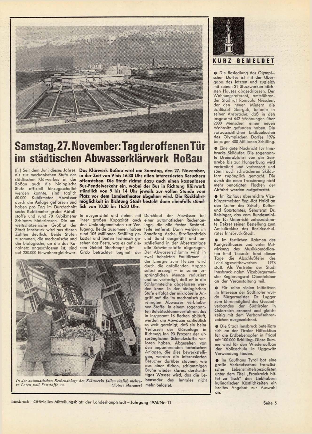 Innsbruck - Offizielles Mitteilungsblatt der Landeshauptstadt - Jahrgang 1976/Nr. 11