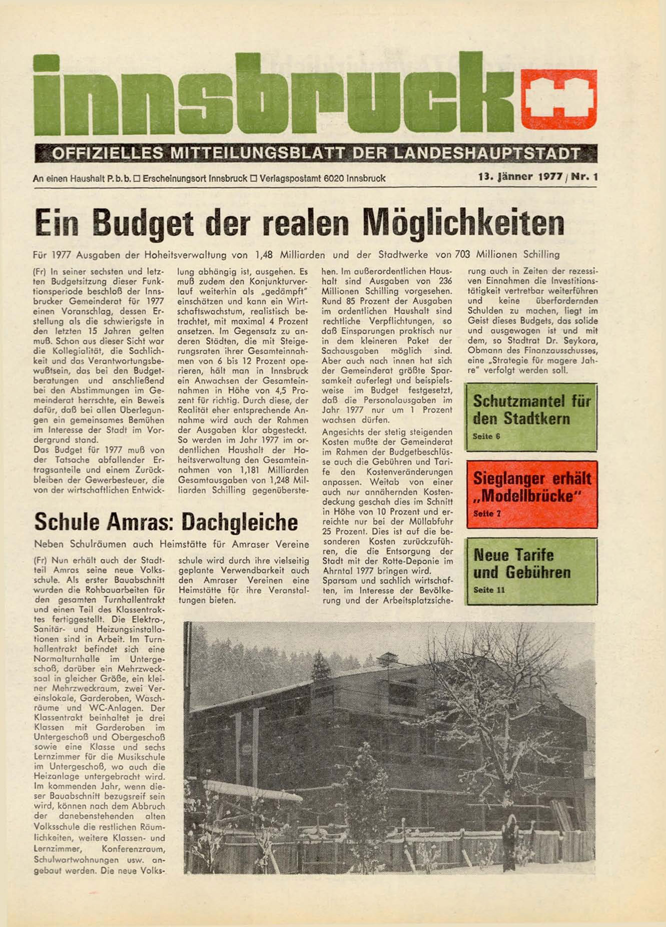 (Fr) In seiner sechsten und letzten Budgetsitzung dieser Funktionsperiode beschloß der Innsbrucker Gemeinderat für 1977