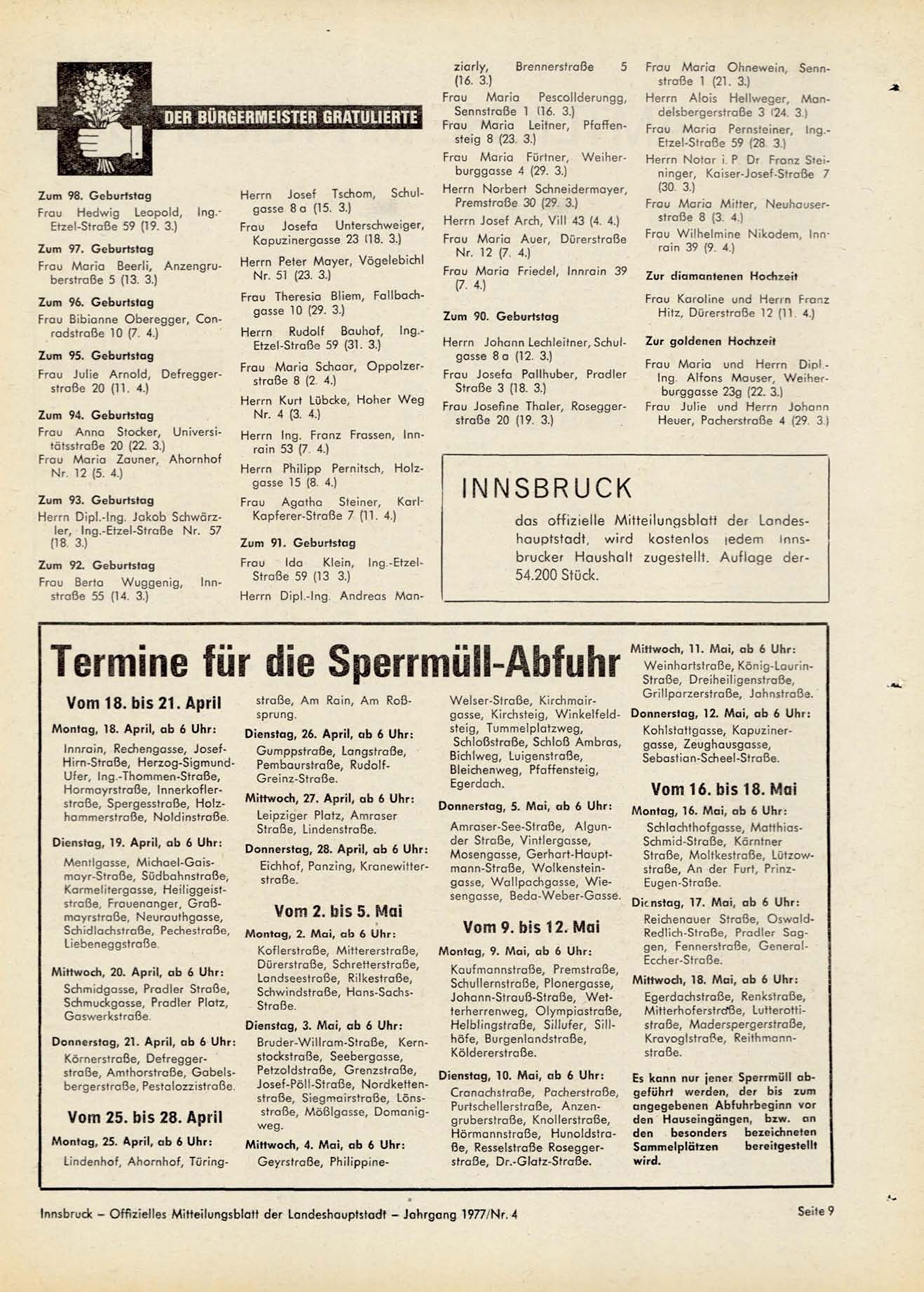 Innsbruck - O f f i z i e l l e s M i t t e i l u n g s b l a t t der L a n d e s h a u p t s t a d t - J a h r g a n g 1977/Nr. 4