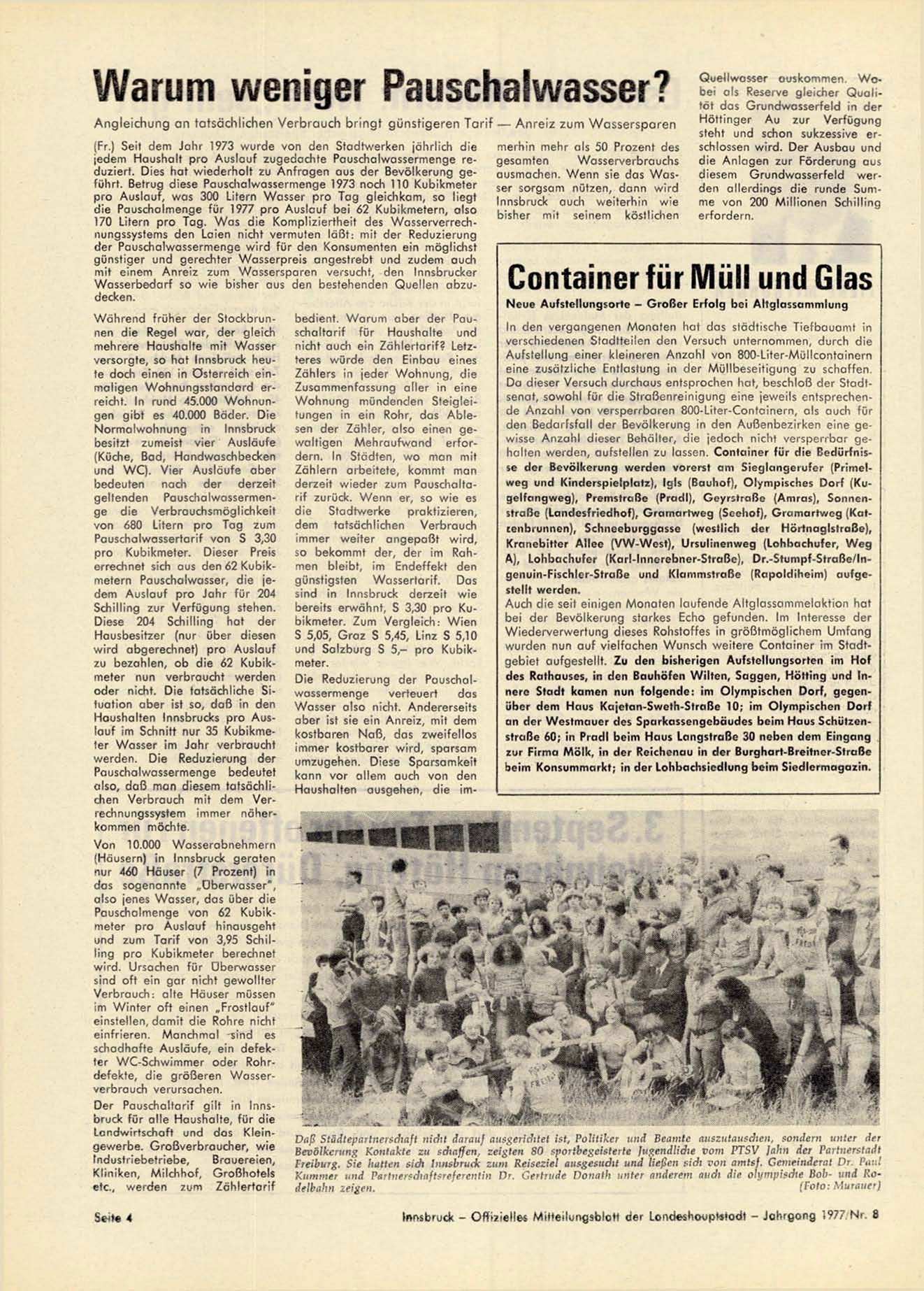 Innsbruck - O f f i z i e l l e s M i f t e i l u n g s b l o t t der L o n d * s h o u p t * t a d t - J a h r g o n g 1977. N r . 8