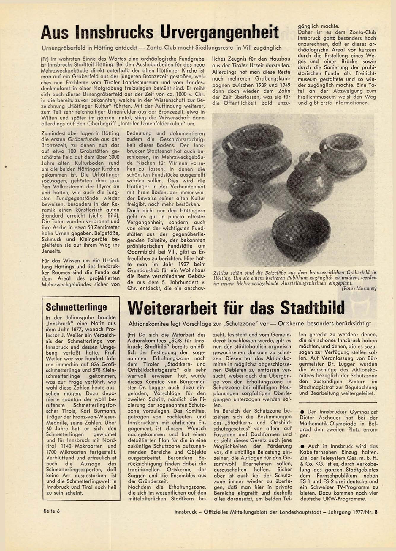 U r n e n g r ä b e r f e l d in Hötting entdeckt — Z o n t a - C l u b macht Siedlungsreste in V i l i zugänglich