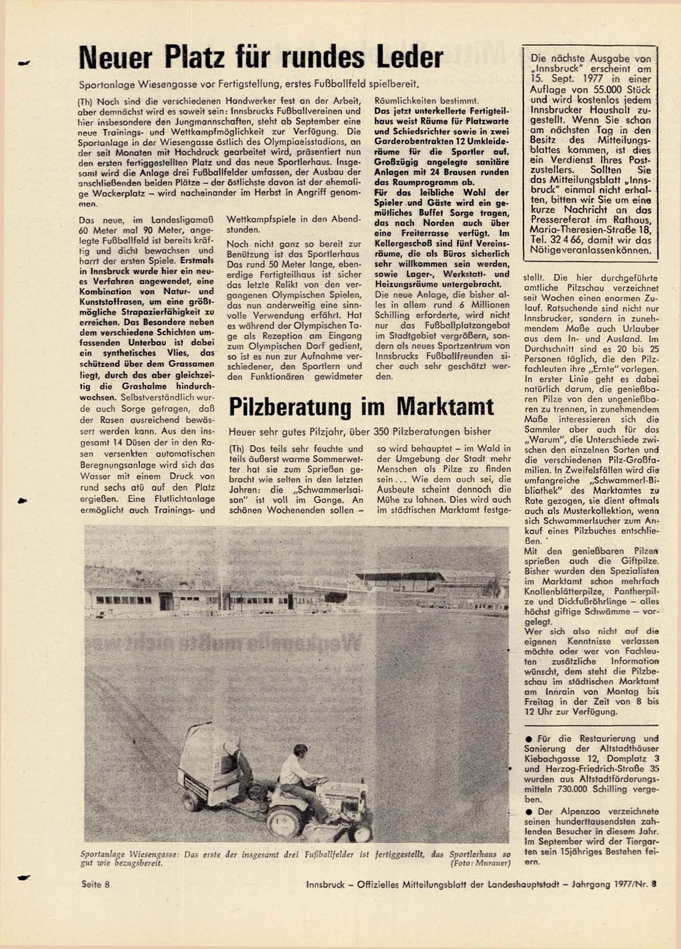 Innsbruck - O f f i z i e l l e s M i t t e i l u n g s b l a t t der L a n d e s h a u p t s t a d t - J a h r g a n g 1977/Nr. 8
