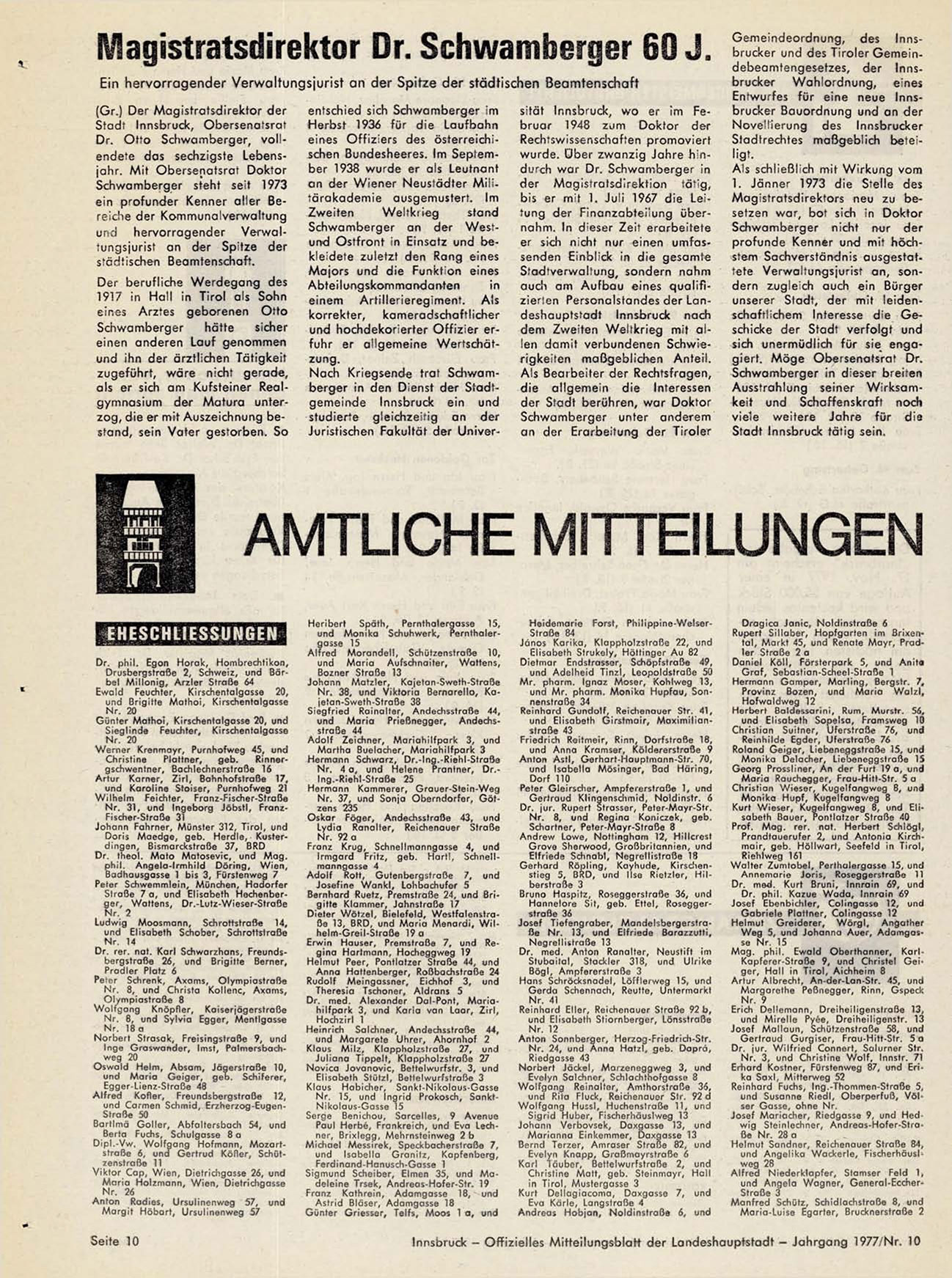 Nach Kriegsende trat Schwamberger in den Dienst der Stadtgemeinde Innsbruck ein und