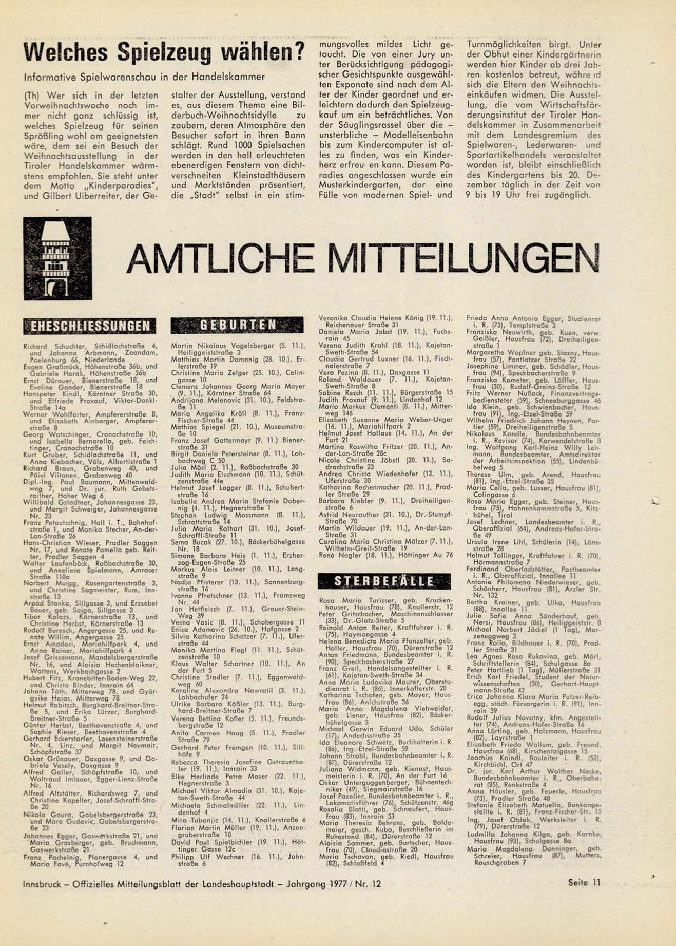 Innsbruck - O f f i z i e l l e s M i t t e i l u n g s b l a t t der L a n d e s h a u p t s t a d t - J a h r g o n g 1977 / N r . 12