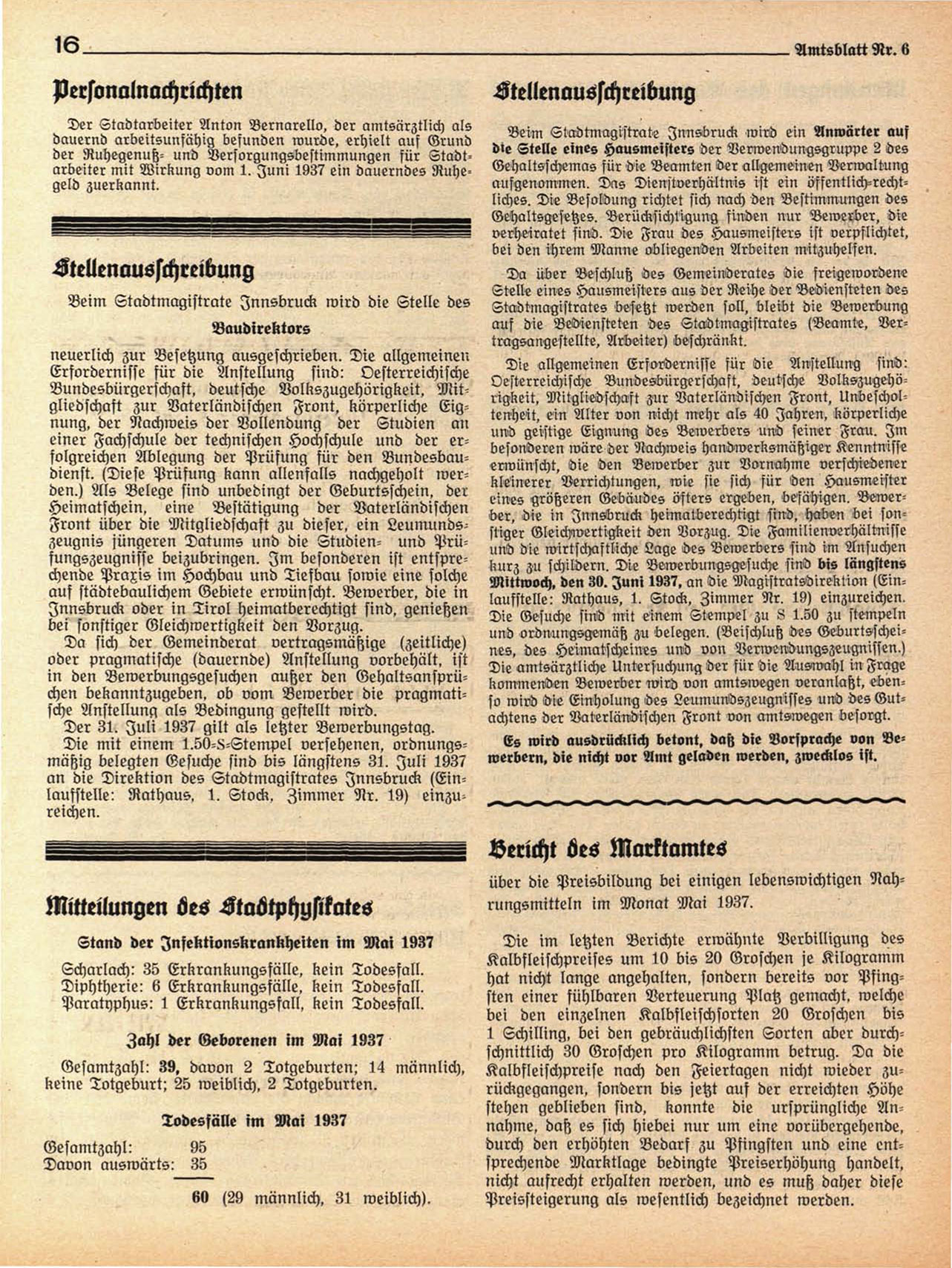 Beim Stadtmagistrate Innsbruck wird die Stelle des