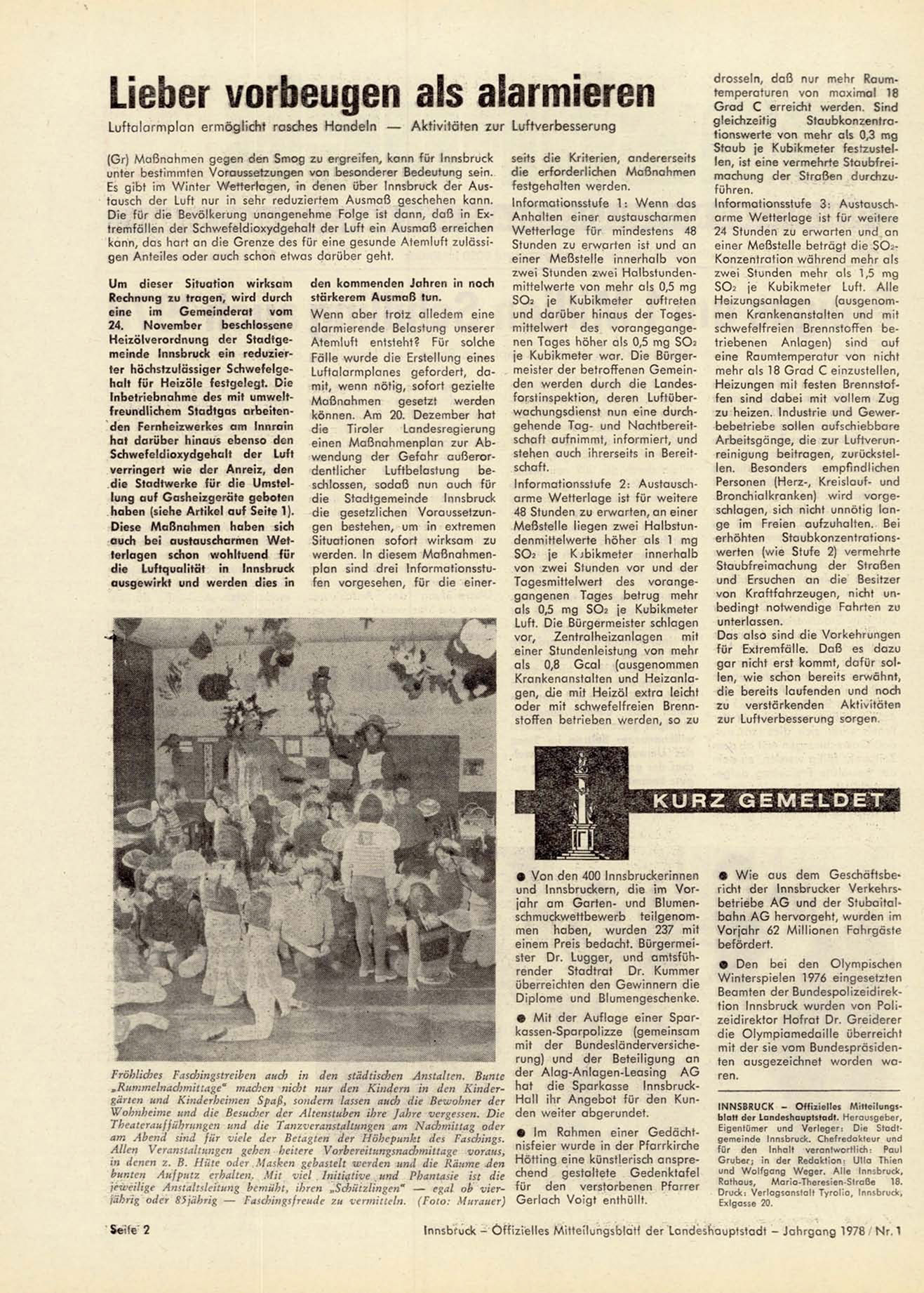 Innsbruck- Offizielles Mitteilungsblatt der Landeshauptstadt - Jahrgang 1978 Nr. 1