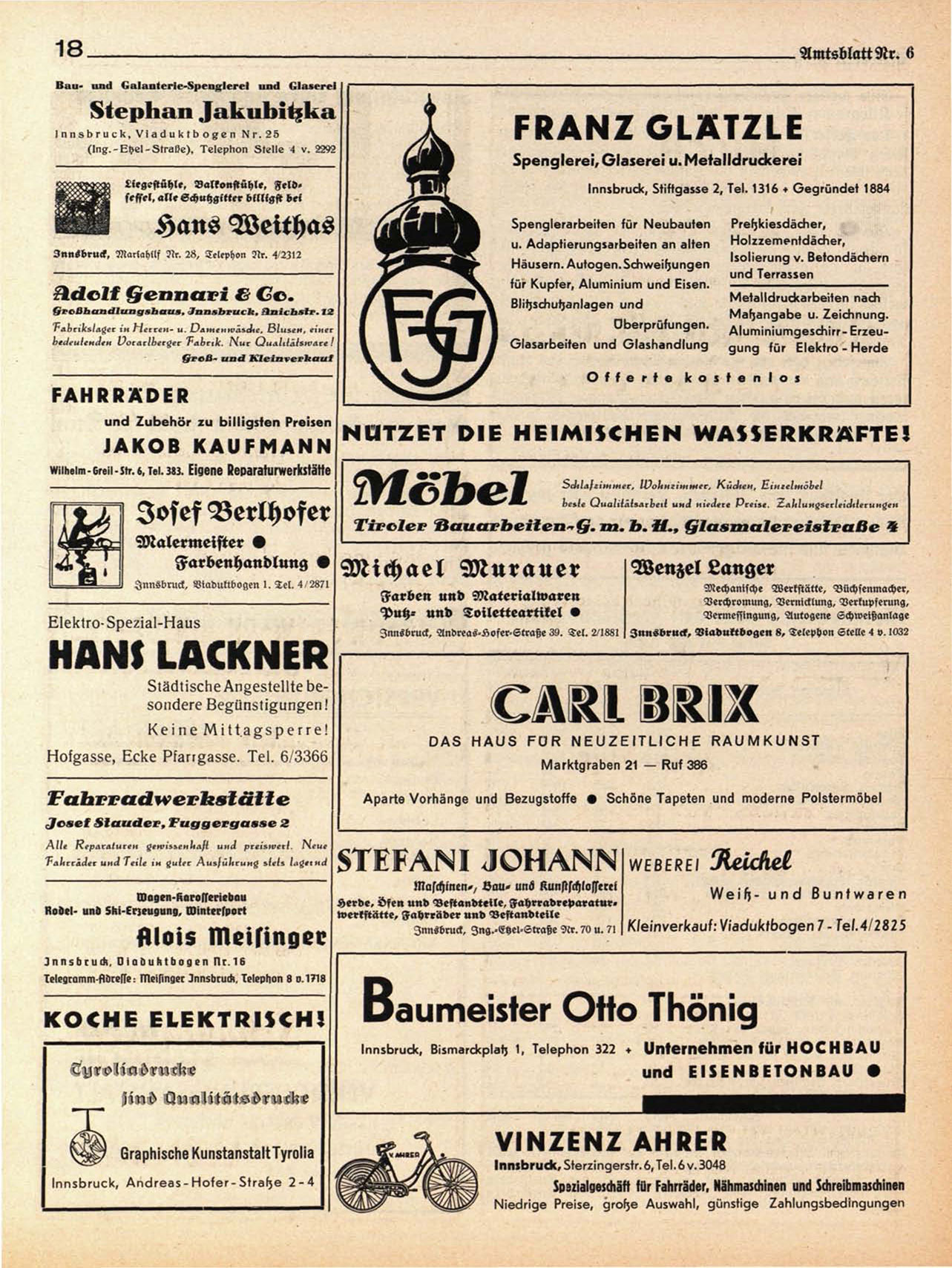 Innsbruck, Andreas-Sofer-Straße 39. Tel. 2/l8«l Innsbruck, Maduktbogen 8, Telephon Stelle 4 v. 1032