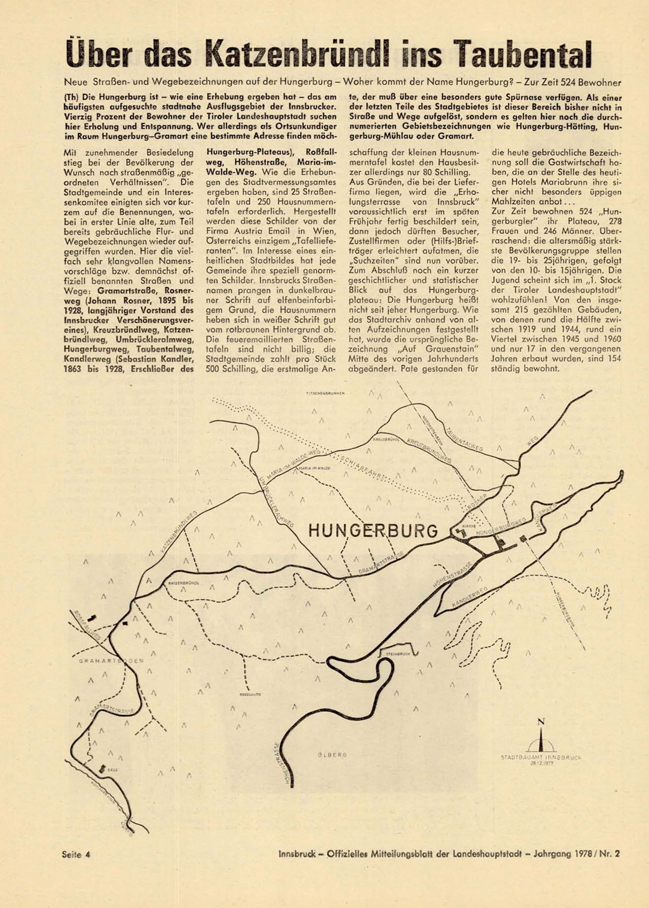 Straße und Wege aufgelöst, sondern es gelten hier noch die durchnumerierten Gebietsbezeichnungen wie Hungerburg-Hötting, Hungerburg-Mühlau oder Gramart.