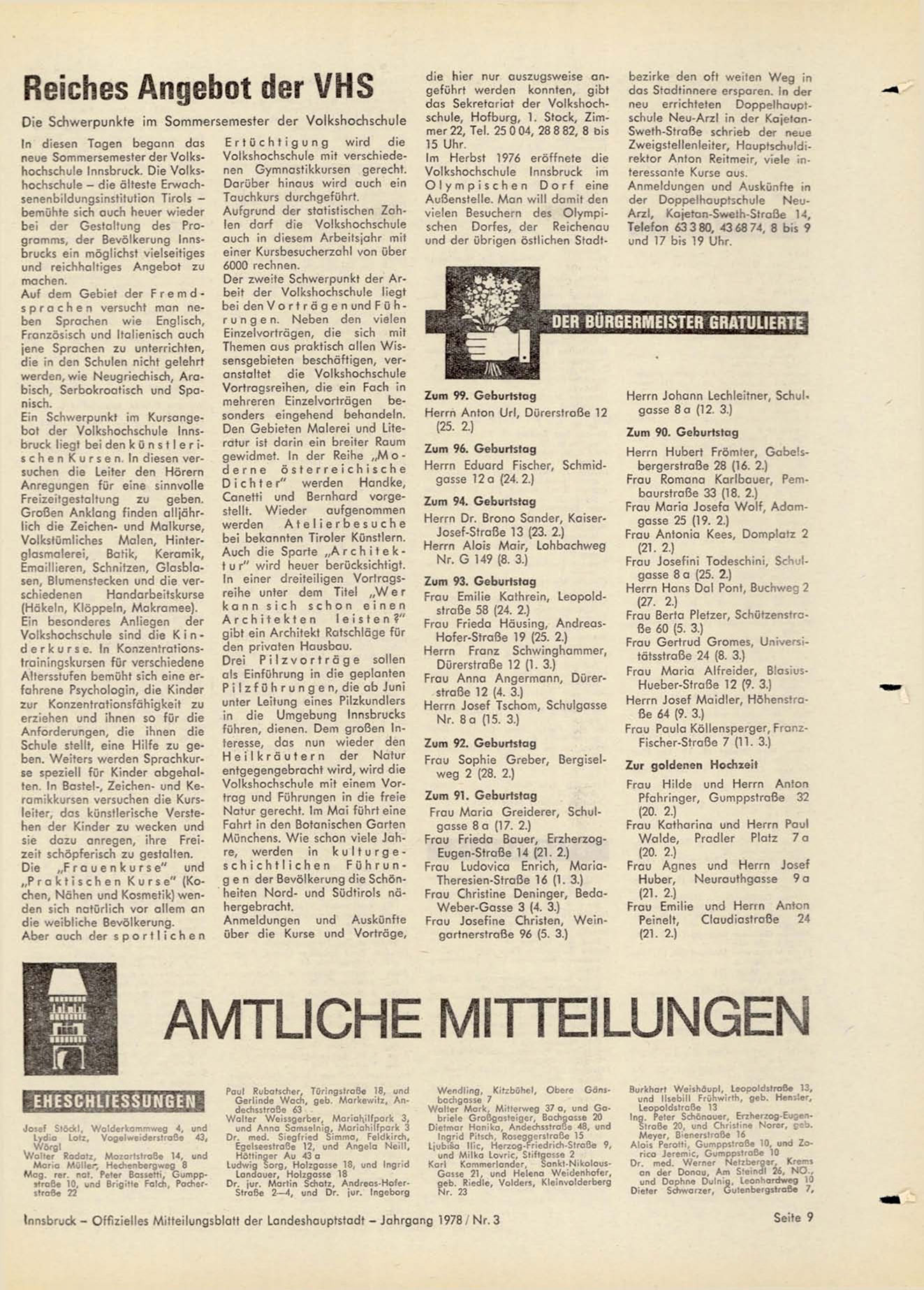 Innsbruck - Offizielles Mitteilungsblatt der Landeshauptstadt - Jahrgang 1978 / Nr. 3