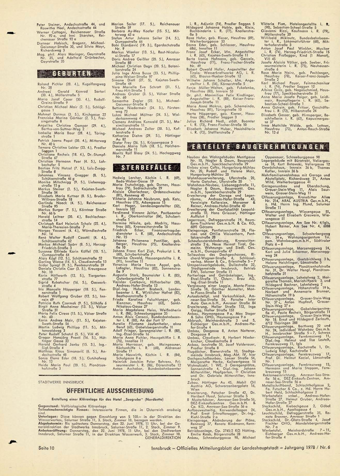 Innsbruck - Offizielles Mitteilungsblatt der Landeshauptstadt - Jahrgang 1978 / Nr. 6