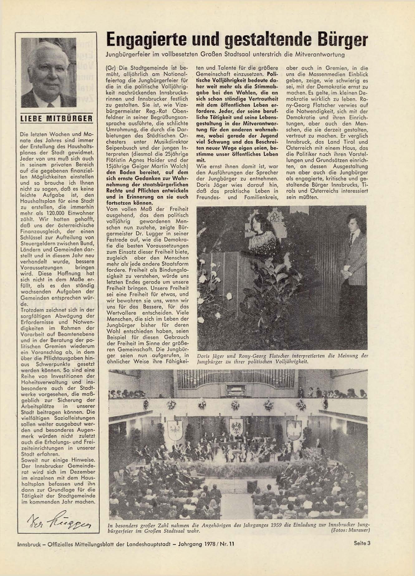 d i e in d i e politische V o l l j ä h r i g keit n a c h r ü c k e n d e n Innsbruckerinnen und Innsbrucker festlich