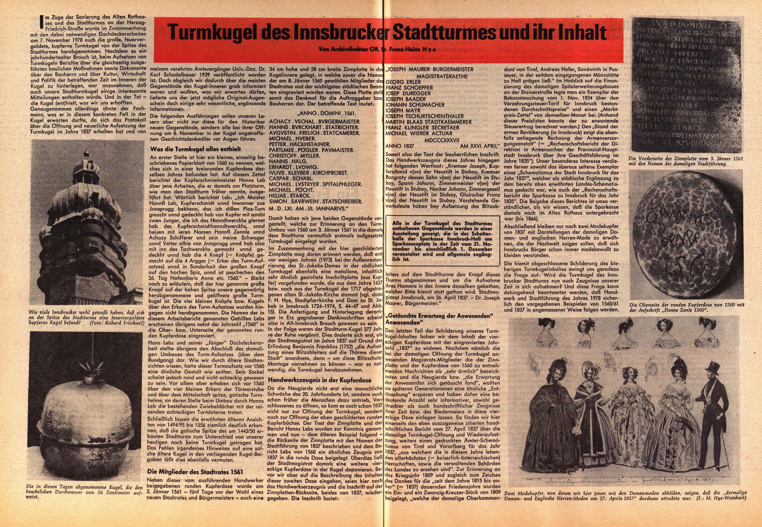 Turmkugel des Innsbrucker Stadtturmes und ihr Inhalt