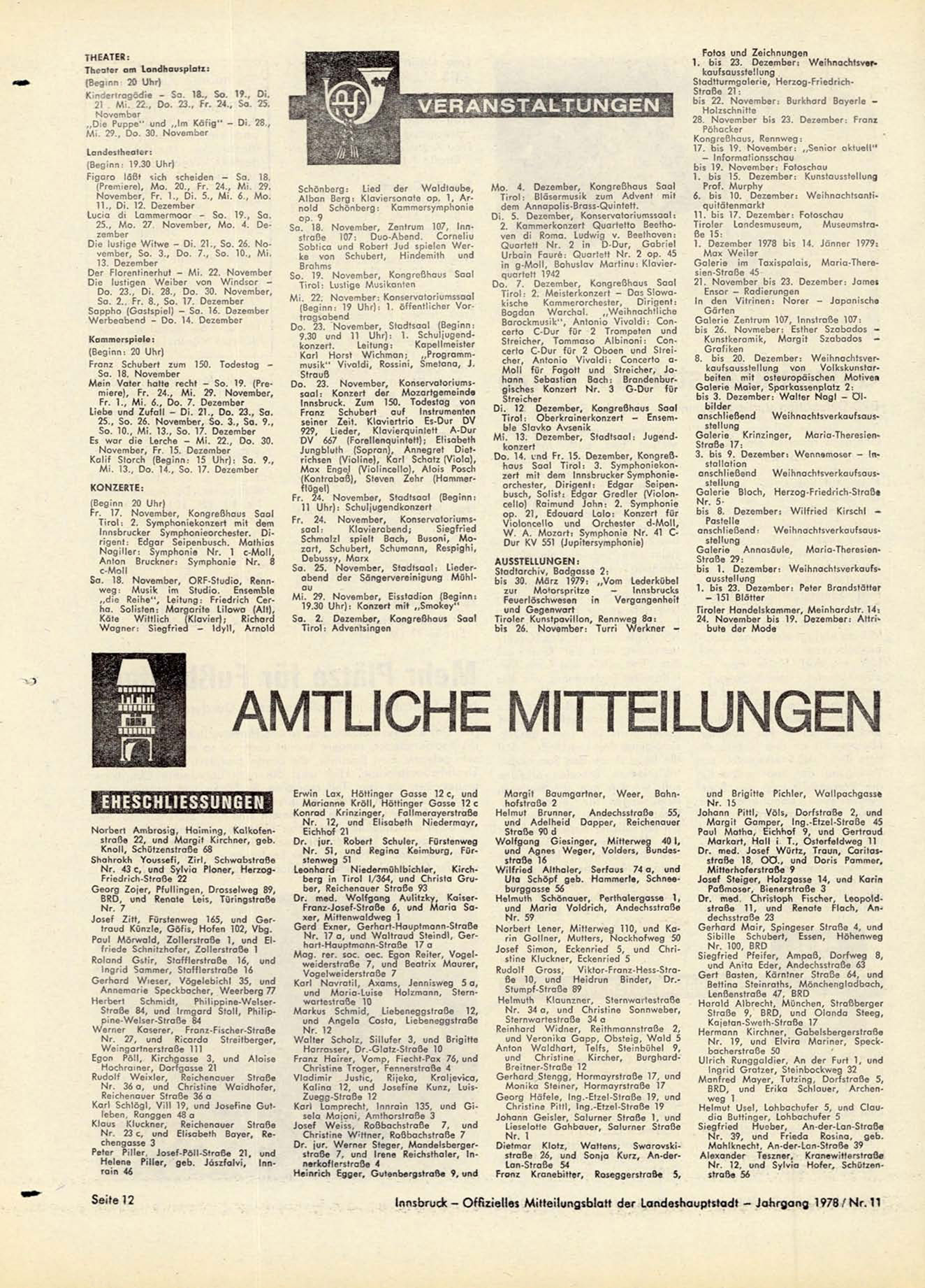Innsbruck - Offizielles Mitteilungsblatt der Landeshauptstadt - Jahrgang 1978 / N r . 11
