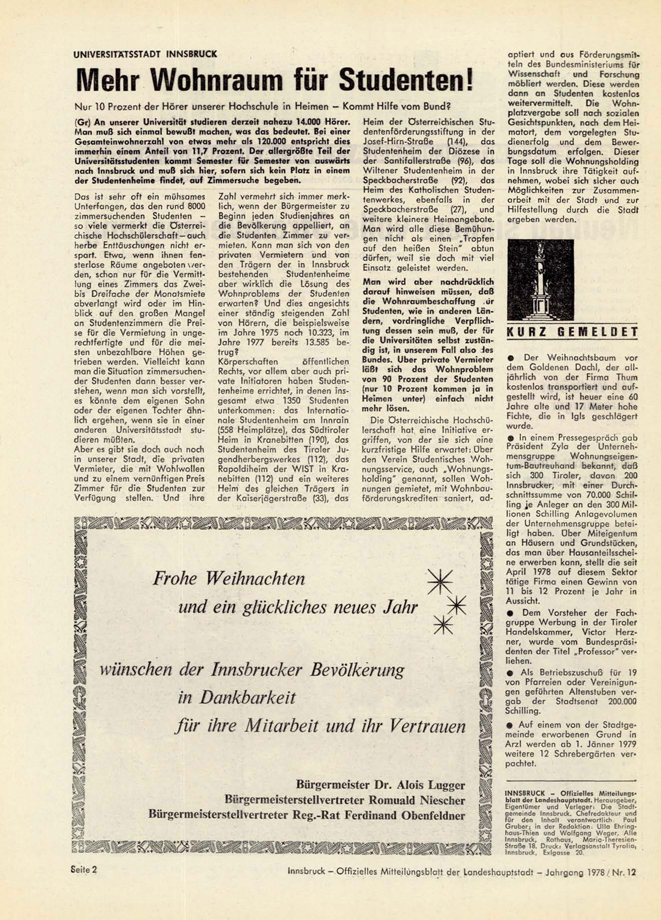 I n n s b r u c k - O f f i z i e l l e s M i t t e i l u n g s b l a t t d e r L a n d e s h a u p t s t a d t - J a h r g a n g 1978. N r . 12