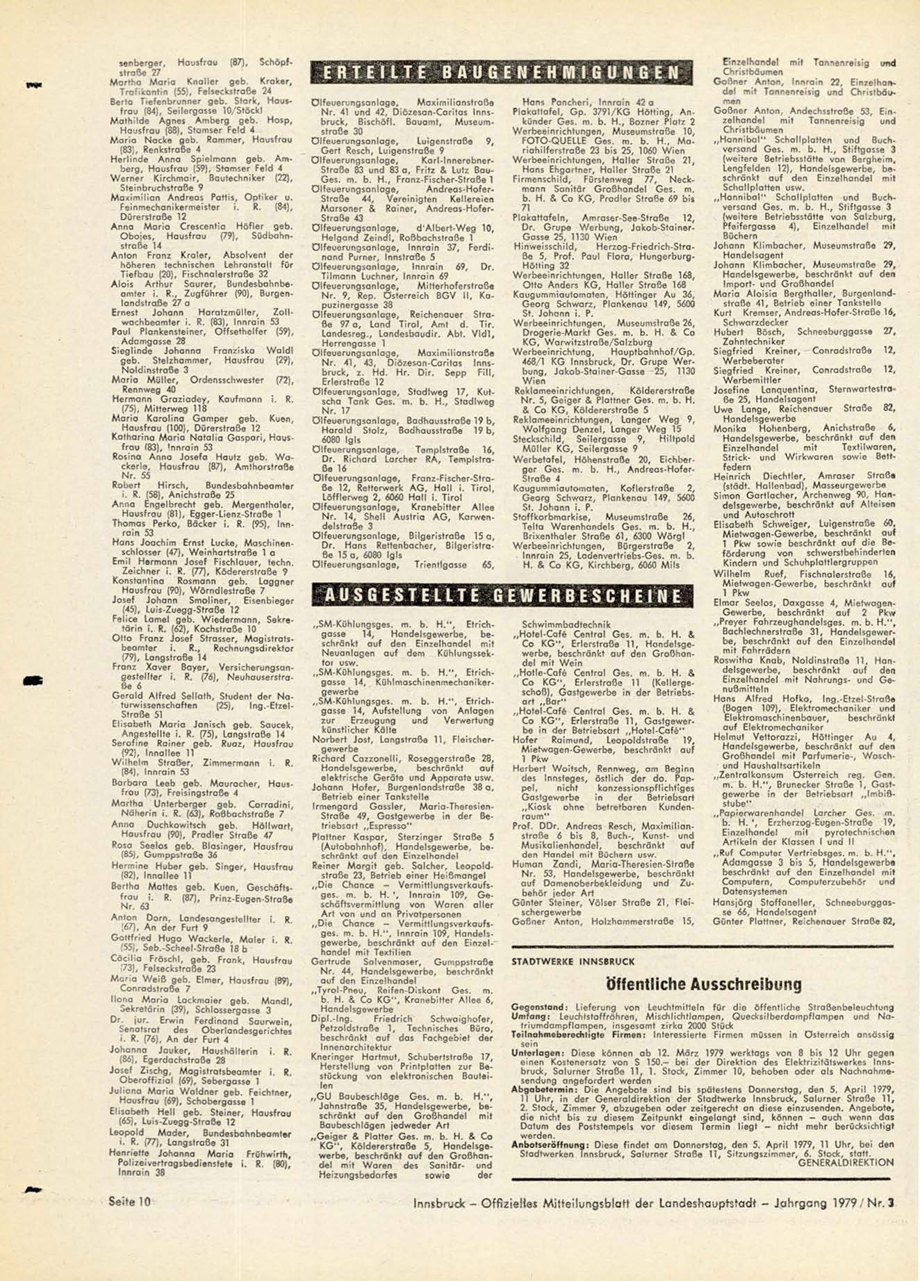 Innsbruck - Offizielles Mitteilungsblatt der Landeshauptstadt - Jahrgang 1979/ Nr. 3
