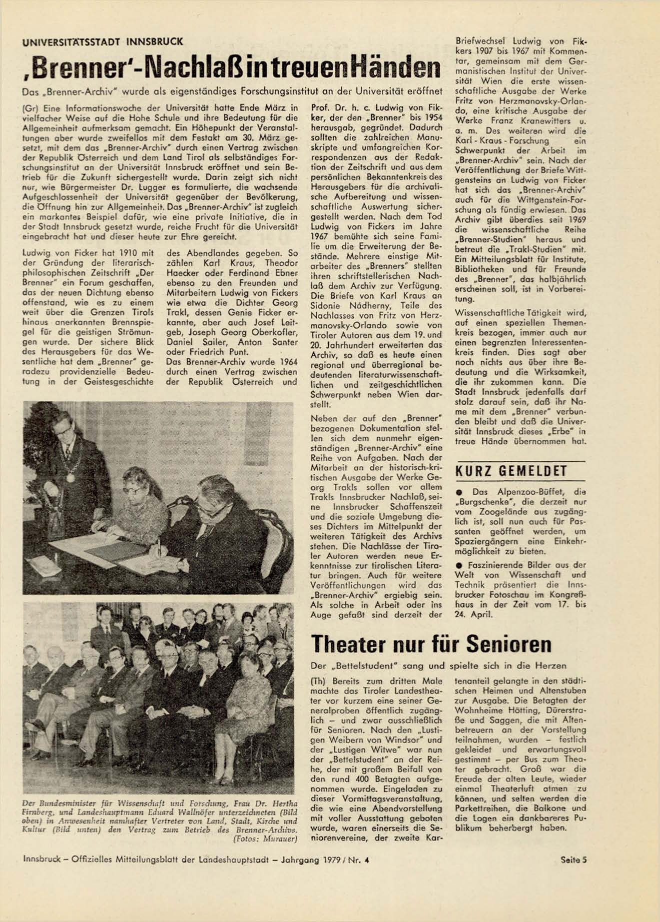 Innsbruck - O f f i z i e l l e s M i t t e i l u n g s b l a t t d e r L a n d e s h a u p t s t a d t - J a h r g a n g 1 9 7 9 / N r . 4