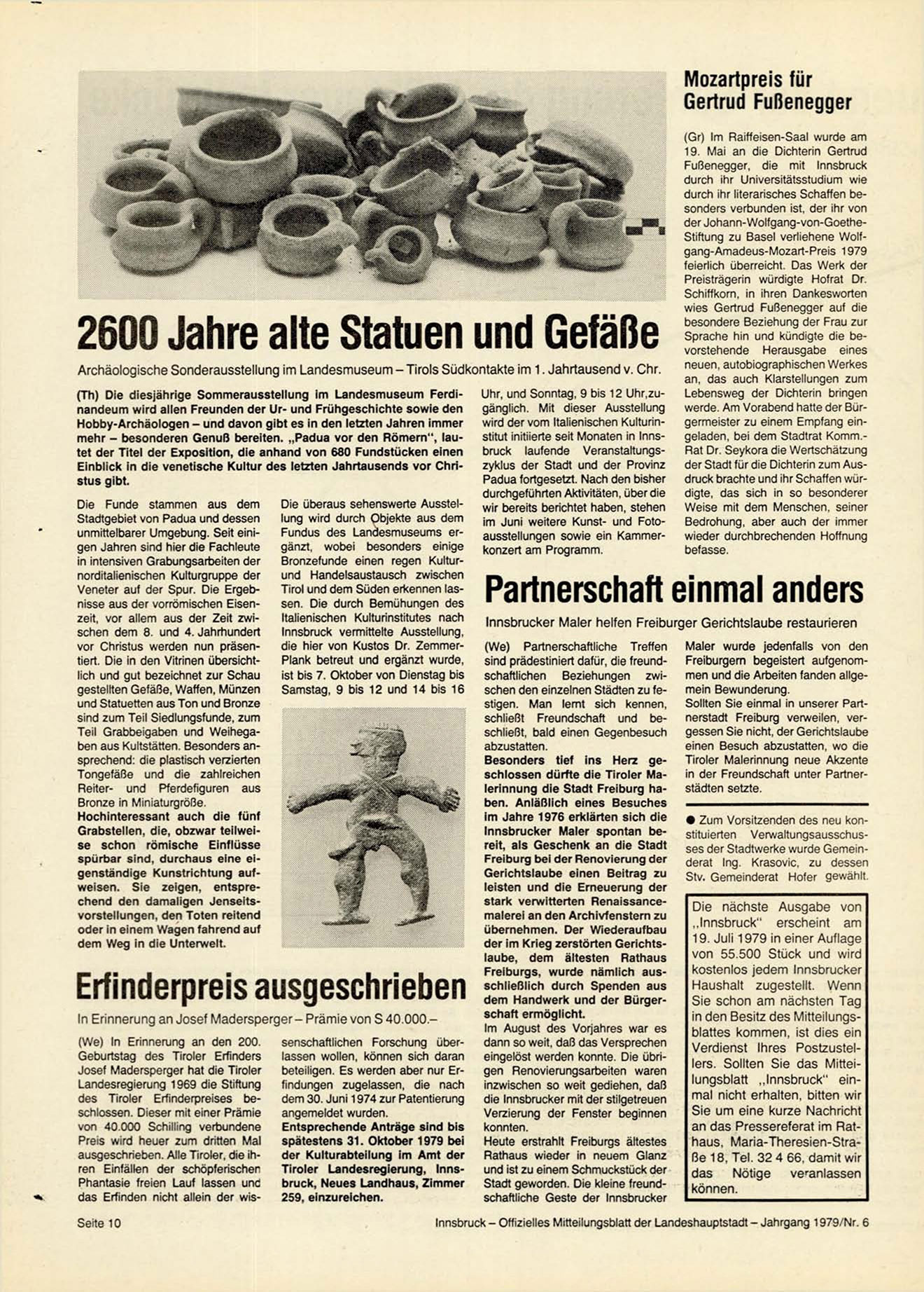 Innsbruck - Offizielles Mitteilungsblatt der Landeshauptstadt - Jahrgang 1979/Nr. 6