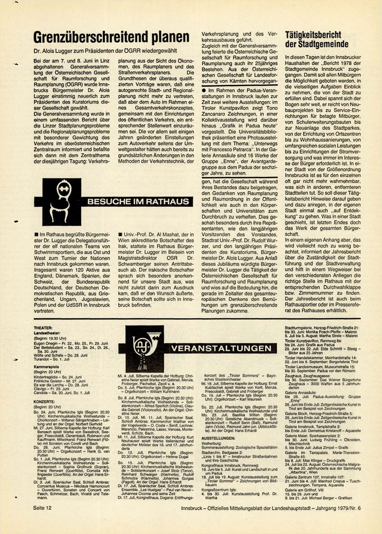 Innsbruck - Offizielles Mitteilungsblatt der Landeshauptstadt - Jahrgang 1979/Nr. 6