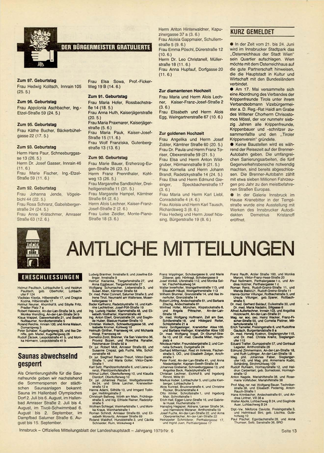 Innsbruck - Offizielles Mitteilungsblatt der Landeshauptstadt - Jahrgang 1979/Nr. 6