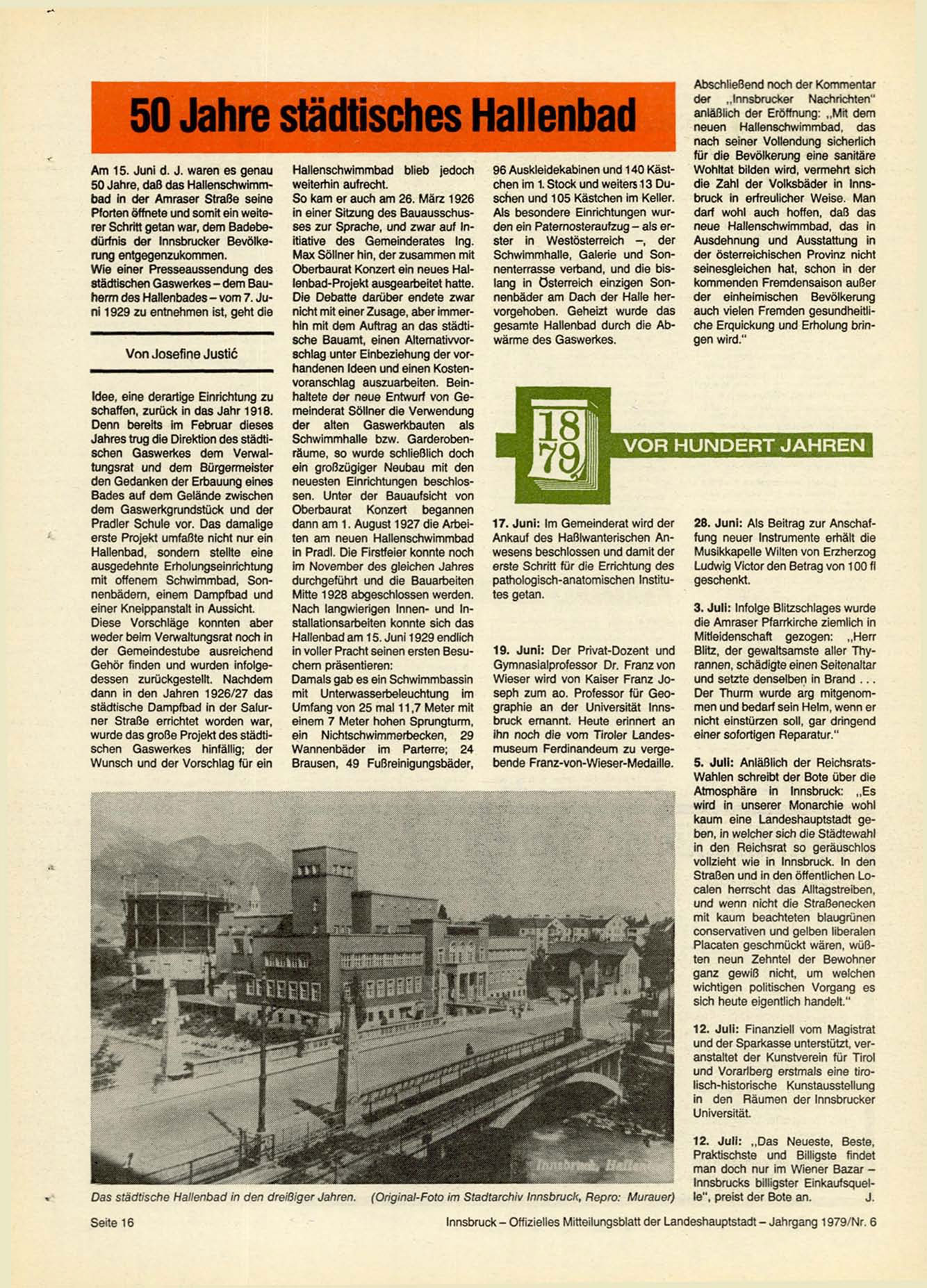 Innsbruck - Offizielles Mitteilungsblatt der Landeshauptstadt - Jahrgang 1979/Nr. 6