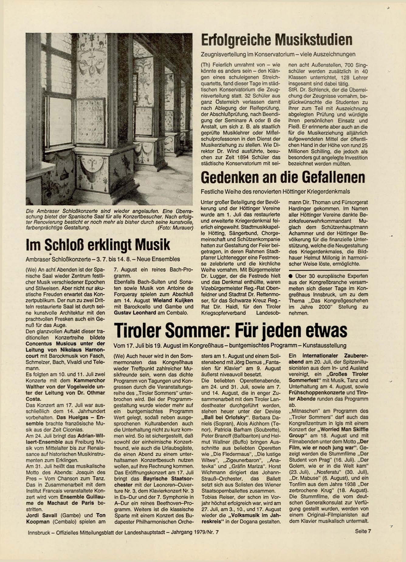 Innsbruck - Offizielles Mitteilungsblatt der Landeshauptstadt - Jahrgang 1979/Nr. 7