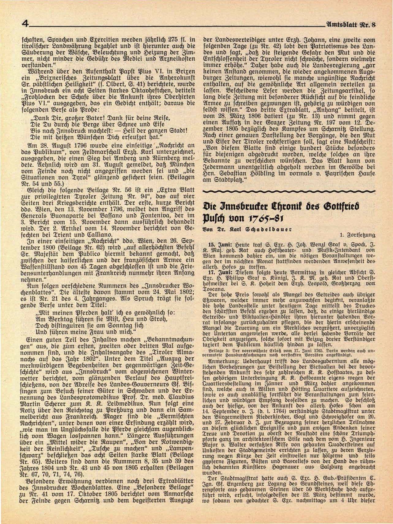 des Innsbrucker Wochenblattes. Eine „Besondere Beilage"