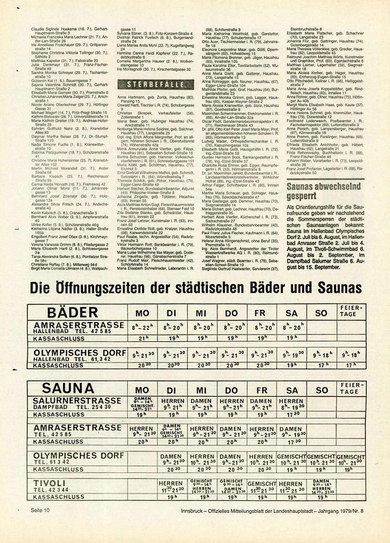 Innsbruck - Offizielles Mitteilungsblatt der Landeshauptstadt - Jahrgang 1979/Nr. 8